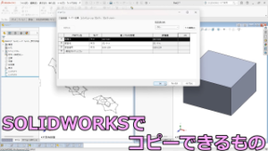SOLIDWORKS内では、色々なものをコピーすることができます。操作としては、ctrlキーを押しながらのドラッグ&ドロップと、コピー+貼り付けがあります。 コピーできるものとして、いくつか例をあげます。